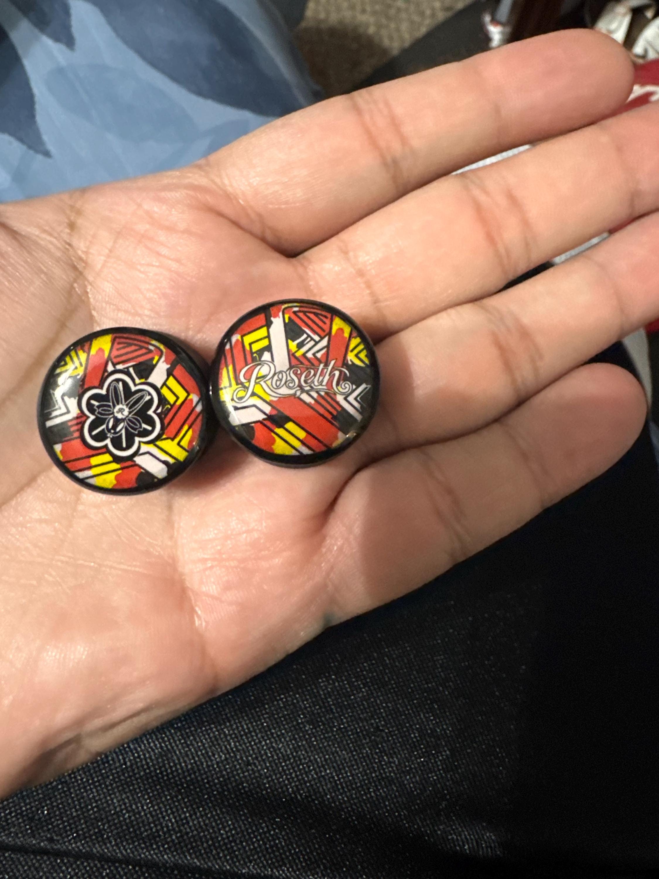 Contact us before purchasing to confirm your artwork will work at your plug size. Orders without prior approval may be delayed or canceled. For text designs, please provide background colour, font and font colour in your request. Custom orders cannot be refunded as they are made just for you. If you need help, please request a mock-up but please note we have a limit of up to 3 mock-ups per pair.